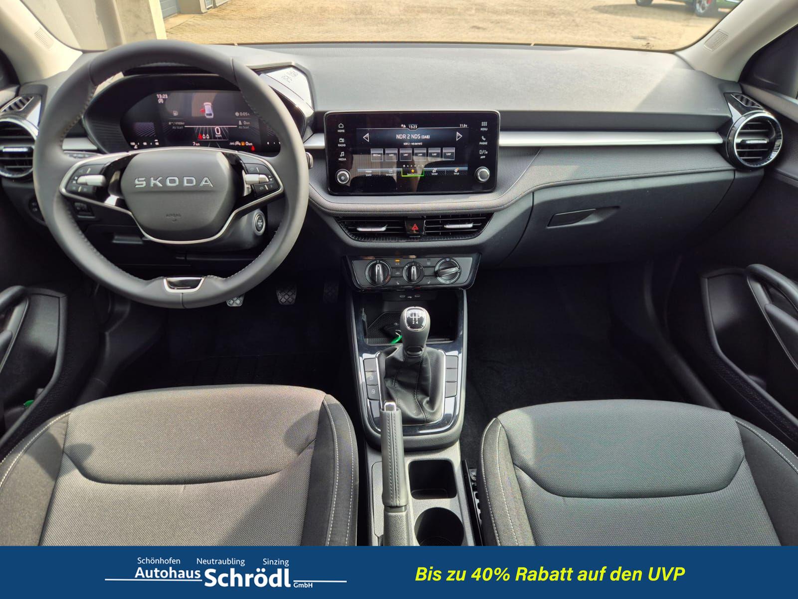 Skoda Fabia 1.0 TSI 95PS Selection 5-türig Rückf.Kamera Parksensoren Sitzheizung Multifunktionslenkrad Klima Skoda-Radio Bluetooth Touchscreen Tempomat Nebelsch. Apple CarPlay + Android Auto